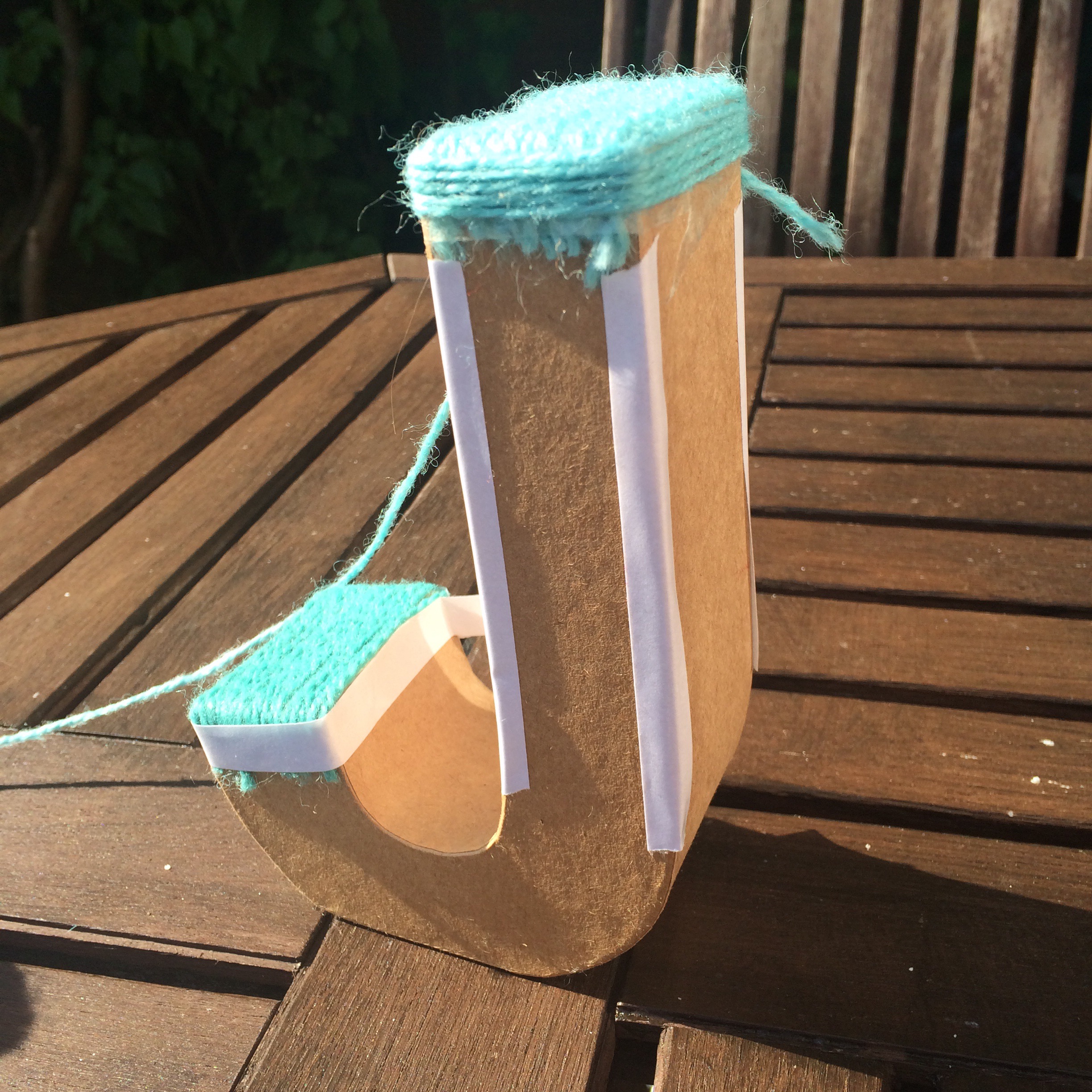 Step 3: Start at one end and wrap the wool tightly around. Wrap all the straight edges first using the tape to end each section. Then wrap the corners last to overlap and gaps.